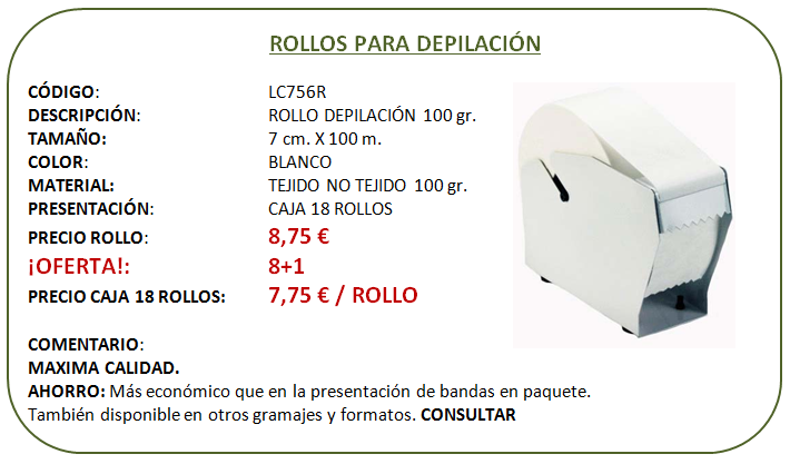 Bandas, Ceras y Complementos de Depilación para Centros de Estética,